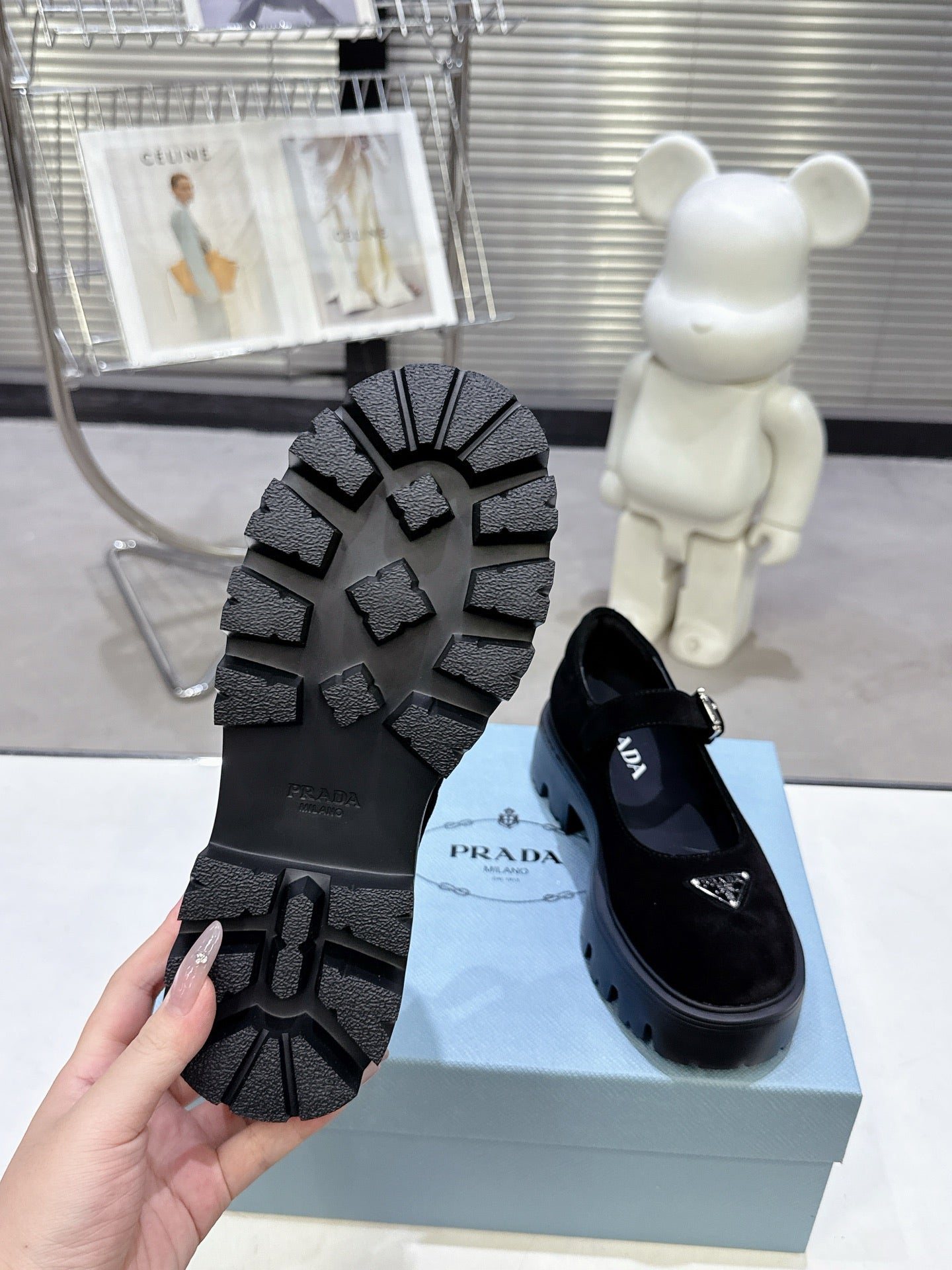 PRADA 25S PLATFORM MARY JANE SHOES IN BLACK SUEDE STYLE 2
