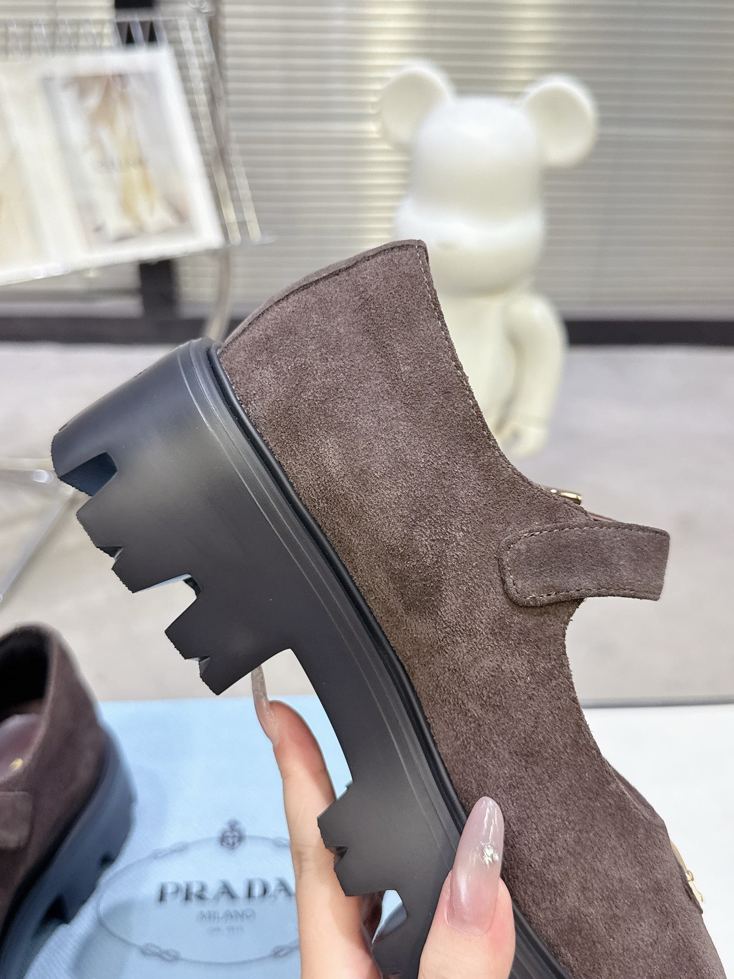 PRADA 25S PLATFORM MARY JANE SHOES IN DARK BROWN SUEDE STYLE 3