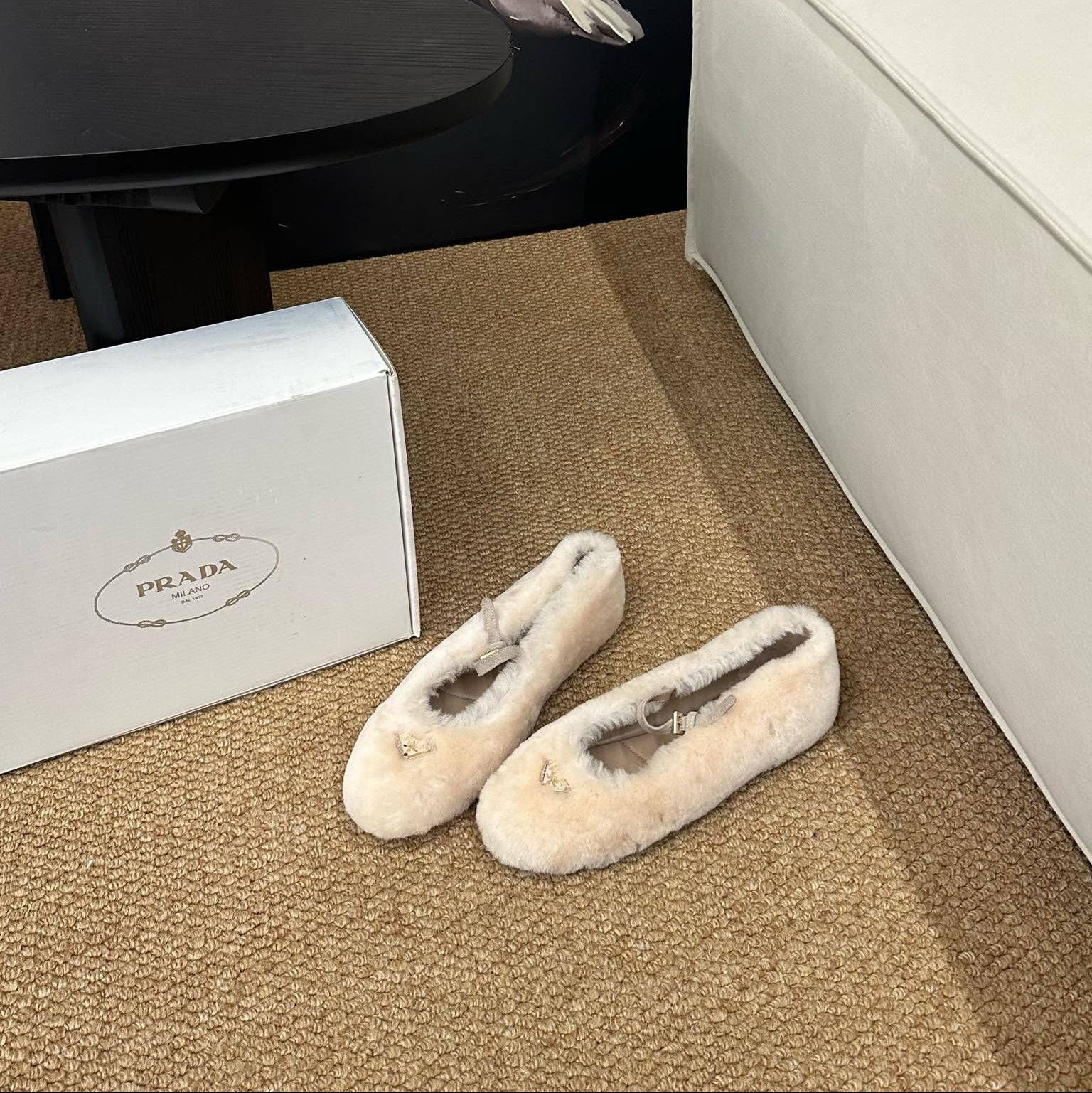 PRADA 26S SHEARLING BALLET FLATS IN CREAM WHITE